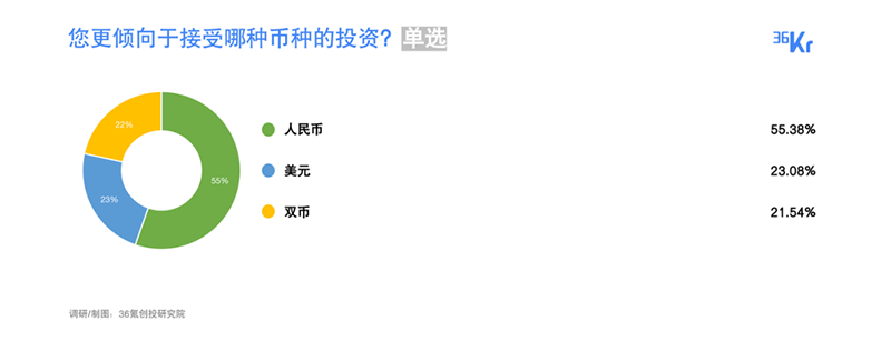 过去一年,人民币转强的话题不断升温。调研中有超过一半的创始人倾向于拿人民币,主要原因在于目前热门领域多与政策导向强相关,具体受到影响的领域有硬科技、企业服务和双碳新能源。