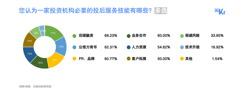 在科技创业的时代下,创业者们普遍认为「技术升级」这件事并非投资机构必须擅长的(17%),也普遍对帮助企业风控的必要性有质疑(34%)。TMT&消费和企服两类公司对机构协助BD(Business Development)有需求,而硬科技企业BD主要还得靠自己。